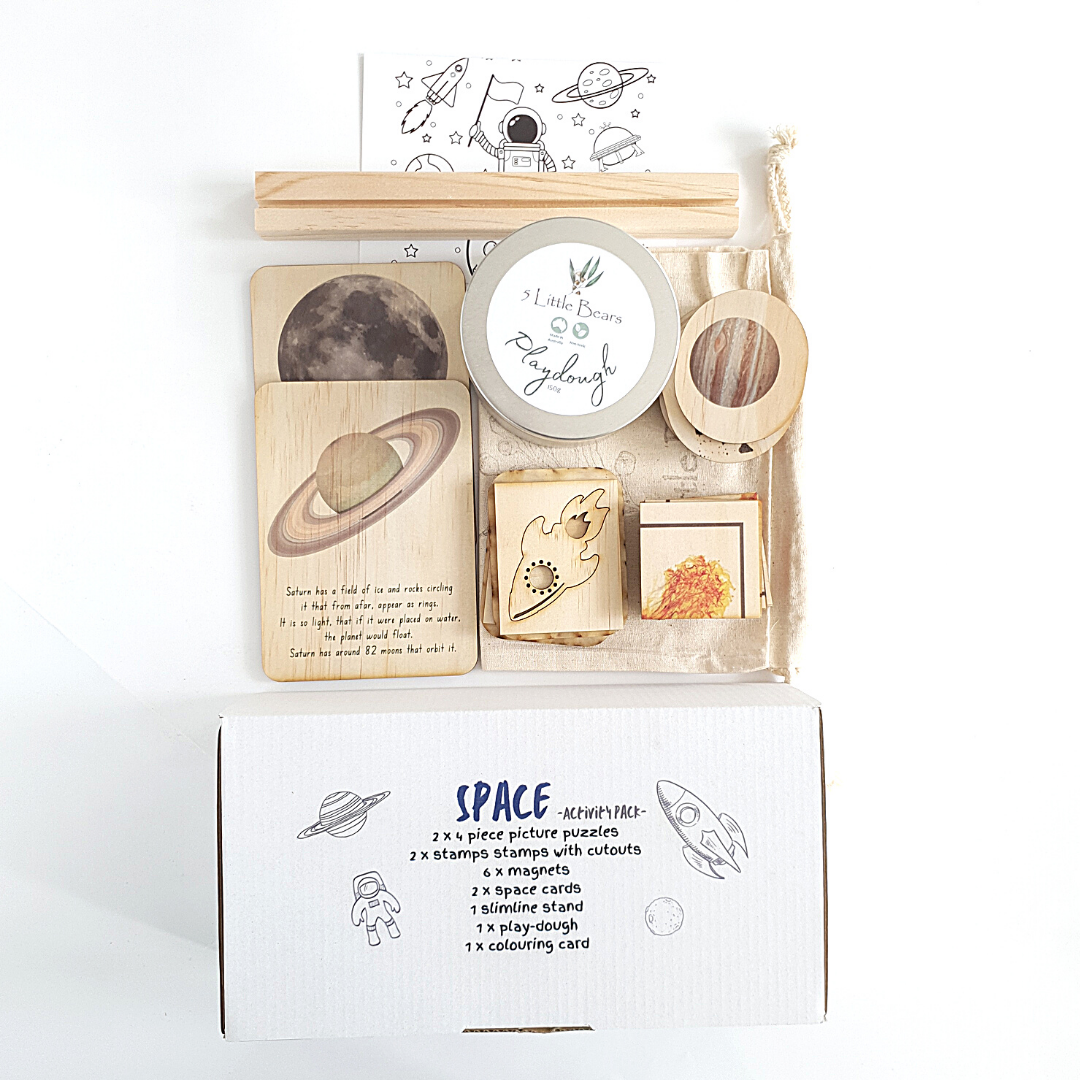 What kid does not love Space! If you cannot decide on which Space product to get our Space pack offers a great taste of a variety of our Space themed items that are out of this world! This pack makes a fantastic birthday gift or Christmas stocking stuffer and with its compact size and handy storage box it is an ideal travel resource for all Space loving children!
